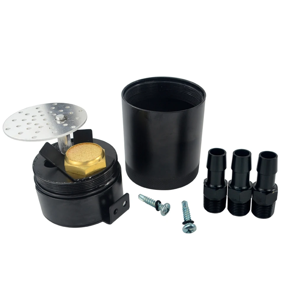 The 100 percent billet, T6061 aluminum can features 3/8″ NPT threads at the inlets, outlet, and drain area and includes three black nylon fittings to make installation effortless.