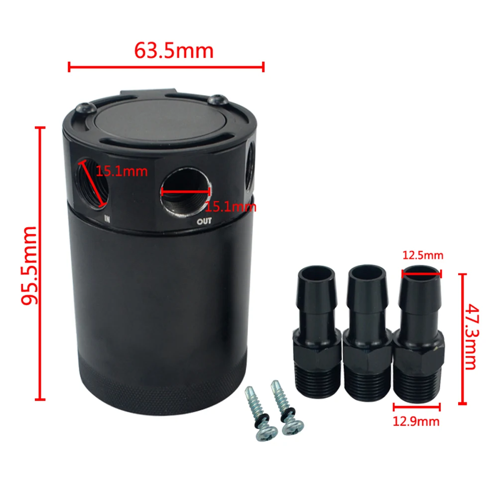Billet Aluminium Engine Oil Catch Can 3-Port Tank Reservoir